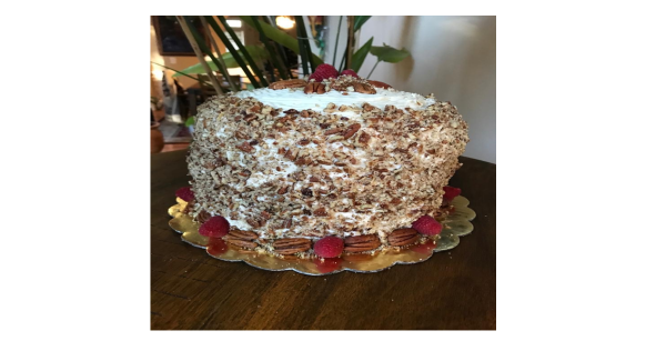 Moist & Soft southern red velvet cake with subtle hints of Cocoa and coffee perfectly balanced with our rich cream cheese frosting and pecans